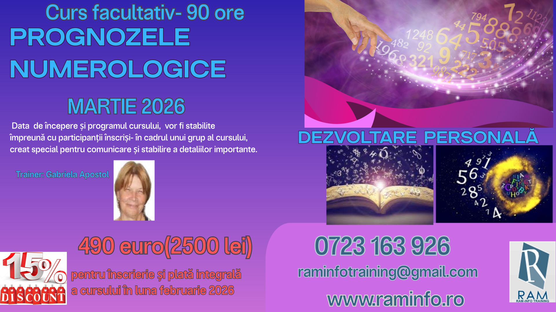 0213116303, 0722675316, 0723163926, office@raminfo.ro,raminfotraining@gmail.com, www.raminfo.ro
