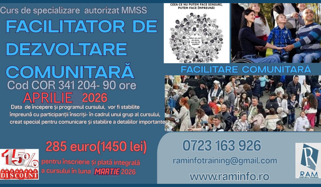 | 12. | MARTIE 2026-ora 10.00 | Curs FACILITATOR de DEZVOLTARE COMUNITARĂ |