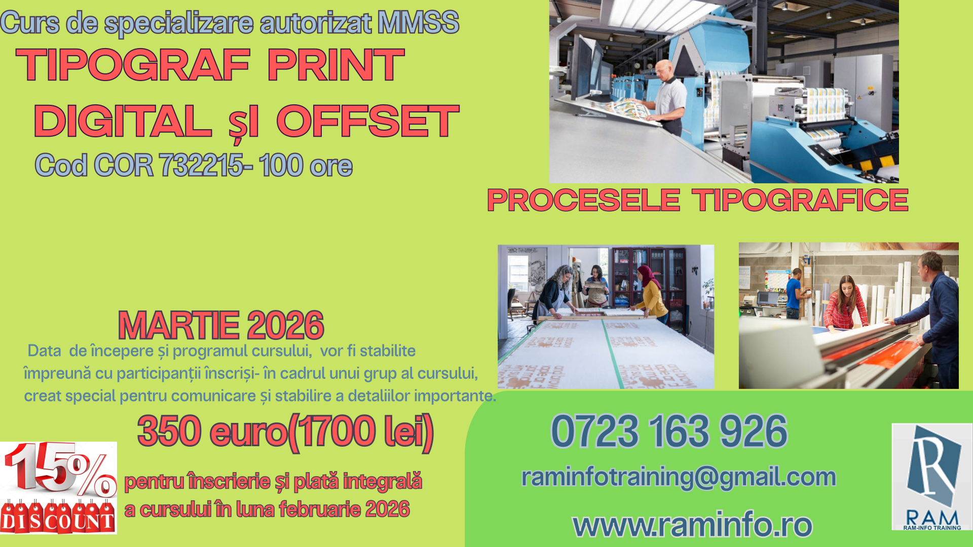 | 13. | MARTIE 2026–Ora 10.00 | Curs TIPOGRAF PRINT DIGITAL ȘI OFFSET | 100 |